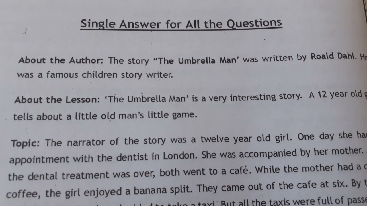 First Year English The Umbrella Man Single Answer Youtube